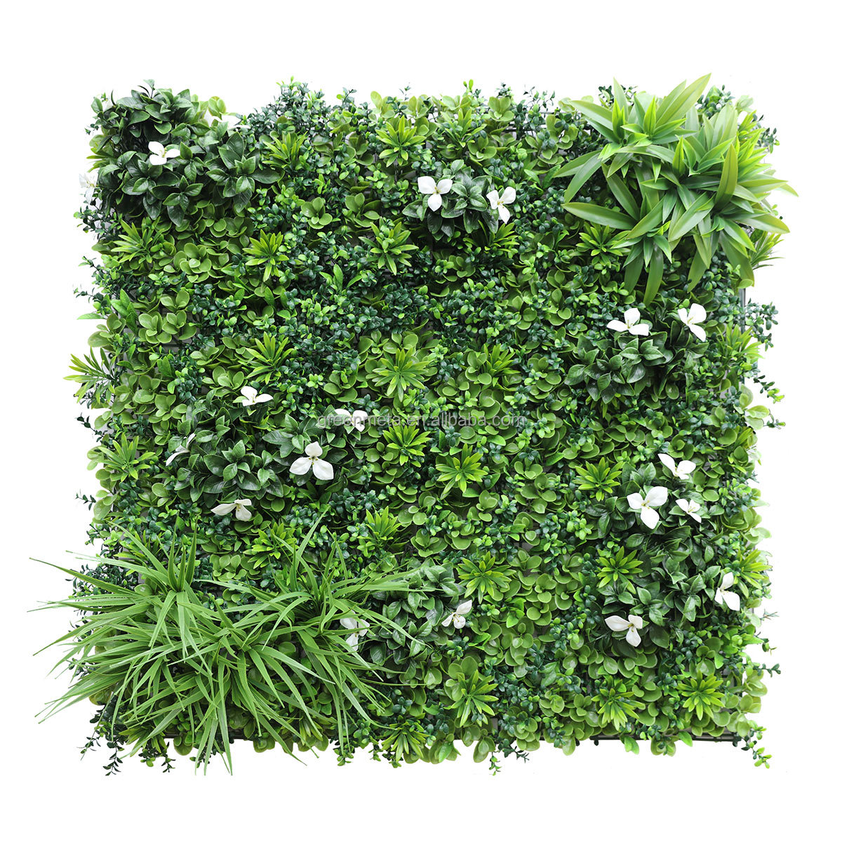หญ้าเทียมสำหรับตกแต่งผนังภายนอกอาคารวัสดุ PE ที่ทนทานใช้ตกแต่งสวนด้วยต้นทุนต่ำ
